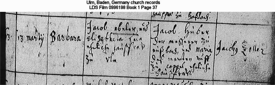 Ulm, Baden, Germany church records LDS Film 0996198 Book 1 Page 37
