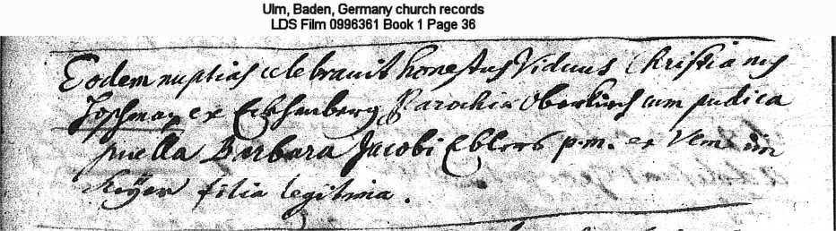 Ulm, Baden, Germany church records LDS Film 0996361 Book 1 Page 36