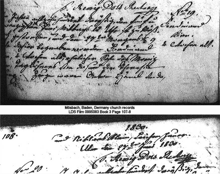Mösbach, Baden, Germany church records LDS Film 0995083 Book 3 Page 107-8