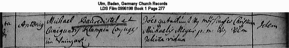 | Birth Record Ulm, Baden, Germany Church Records LDS Film 0996198 Book 1 Page 277 |