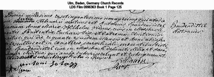 | Death Record Ulm, Baden, Germany Church Records LDS Film 0996363 Book 1 Page 125 |