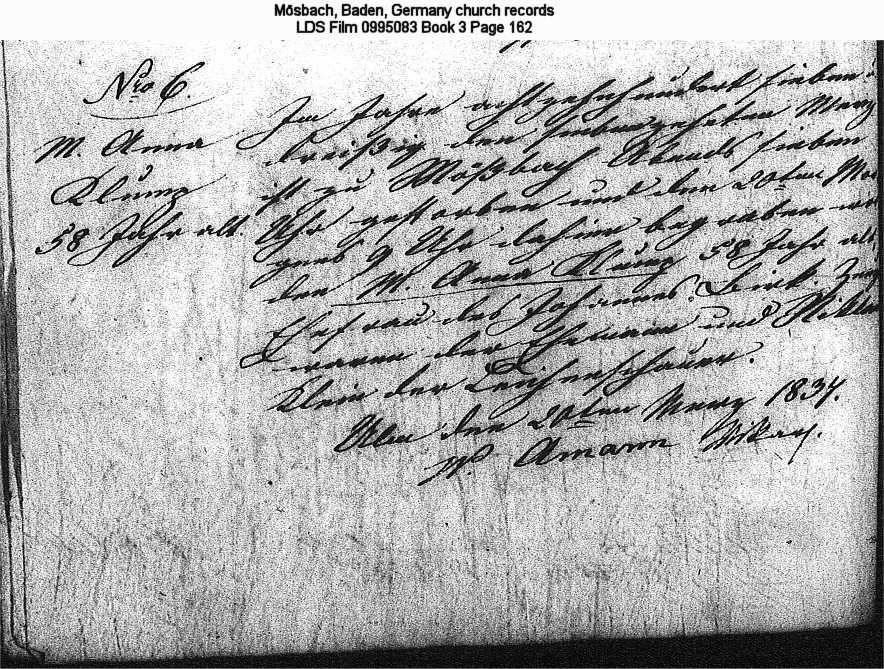 | Death Record Mösbach, Baden, Germany church records LDS Film 0995083 Book 3 Page 162 |