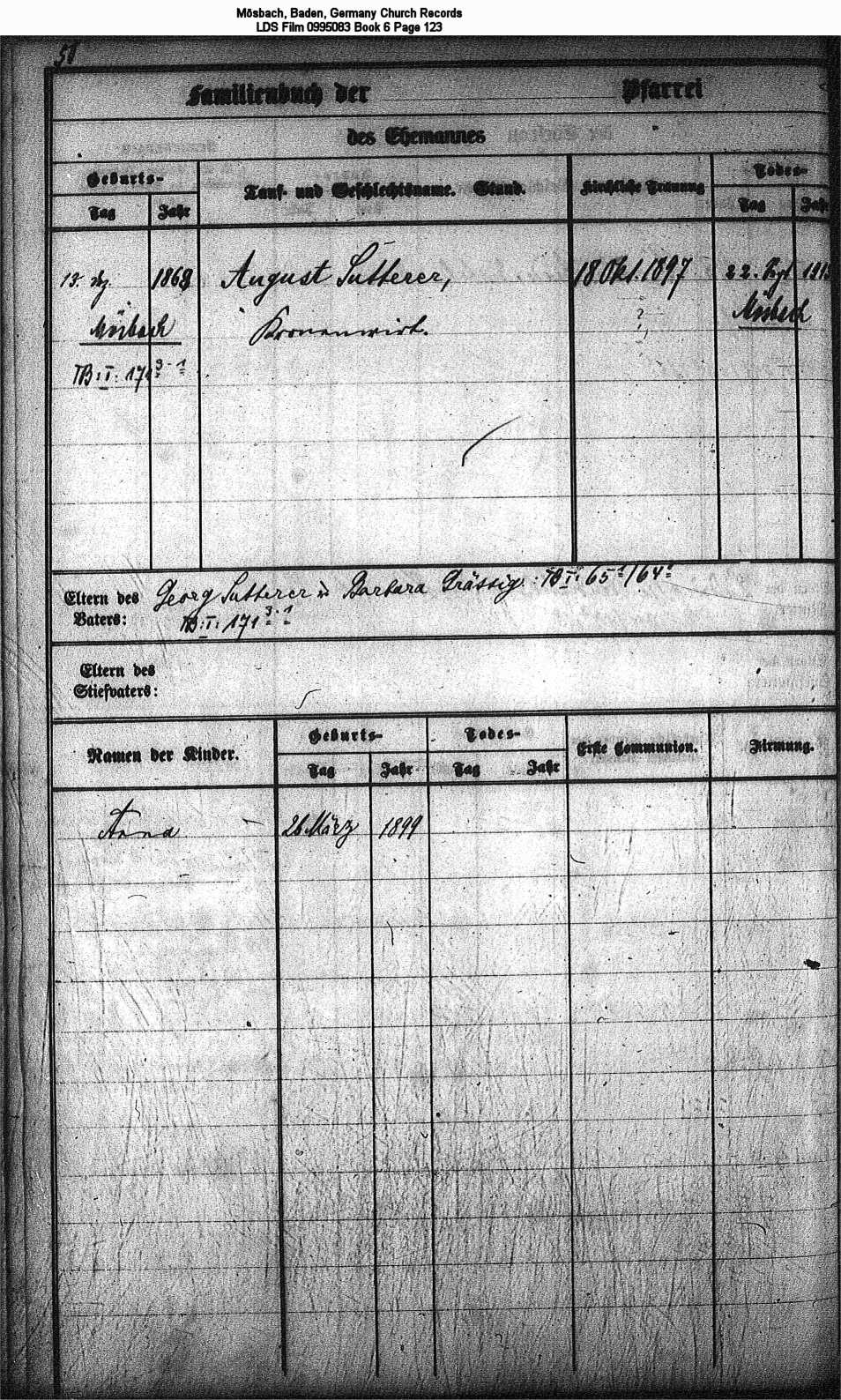 Mösbach, Baden, Germany Church Records LDS Film 0995083 Book 6 Page 123