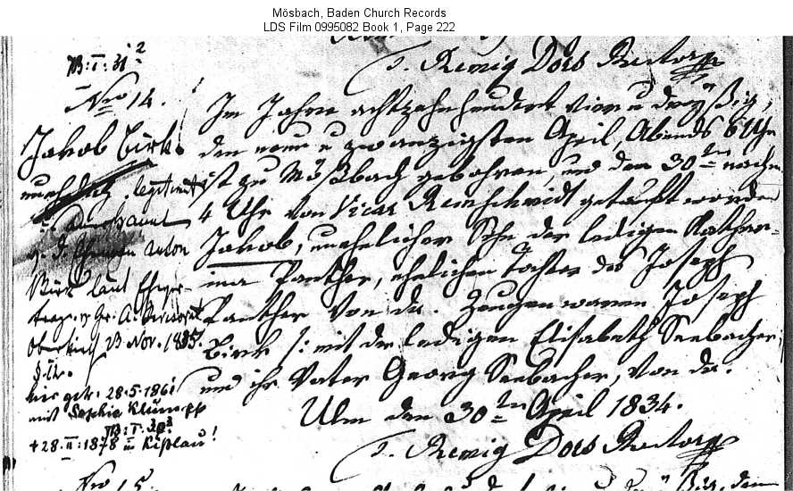 Mösbach, Baden Church Records LDS Film 0995082 Book 1, Page 222