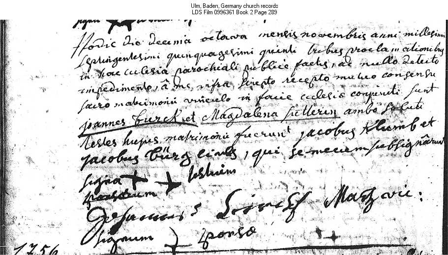 | Marriage Record Ulm, Baden, Germany church records LDS Film 0996361 Book 2 Page 289 |