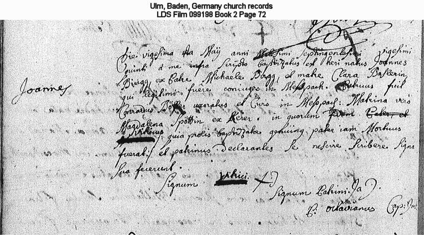 | Possible Birth Record Ulm, Baden, Germany church records LDS Film 099198 Book 2 Page 72 |