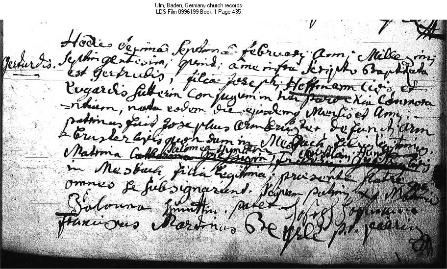 | Birth Record Ulm, Baden, Germany church records LDS Film 0996199 Book 1 Page 435 |