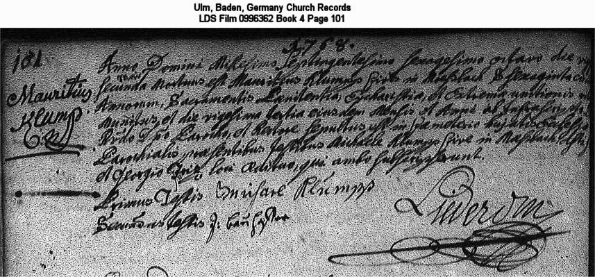 | Death Record Ulm, Baden, Germany Church Records LDS Film 0996362 Book 4 Page 101 |