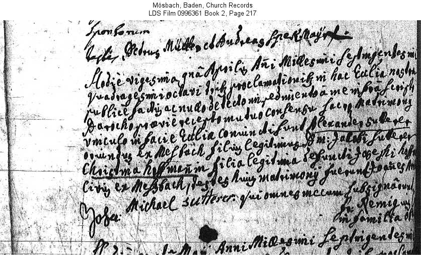 Mösbach, Baden, Church Records LDS Film 0996361 Book 2, Page 217