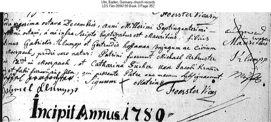 Ulm, Baden, Germany church records LDS Film 0996199 Book 4 Page 352