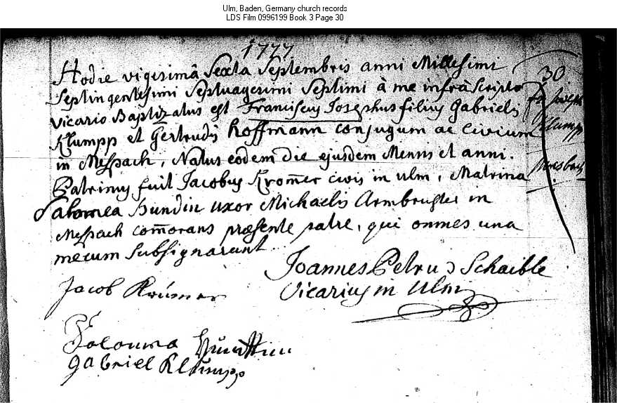 Ulm, Baden, Germany church records LDS Film 0996199 Book 3 Page 30