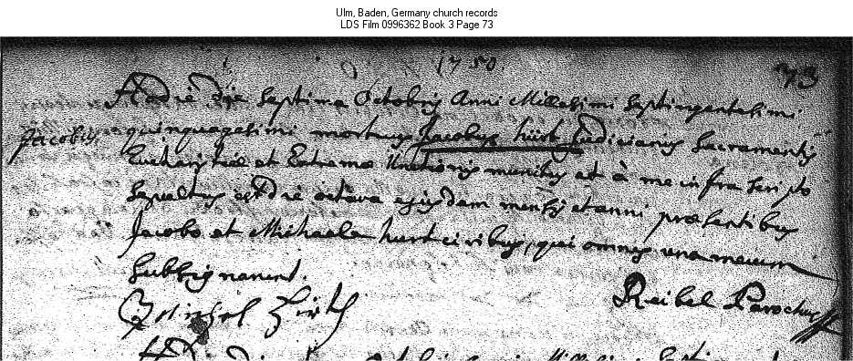 | Death Record Ulm, Baden, Germany church records LDS Film 0996362 Book 3 Page 73 |