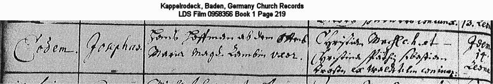 | Birth Record Kappelrodeck, Baden, Germany Church Records LDS Film 0958356 Book 1 Page 219 |
