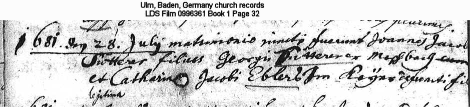 Ulm, Baden, Germany church records LDS Film 0996361 Book 1 Page 32