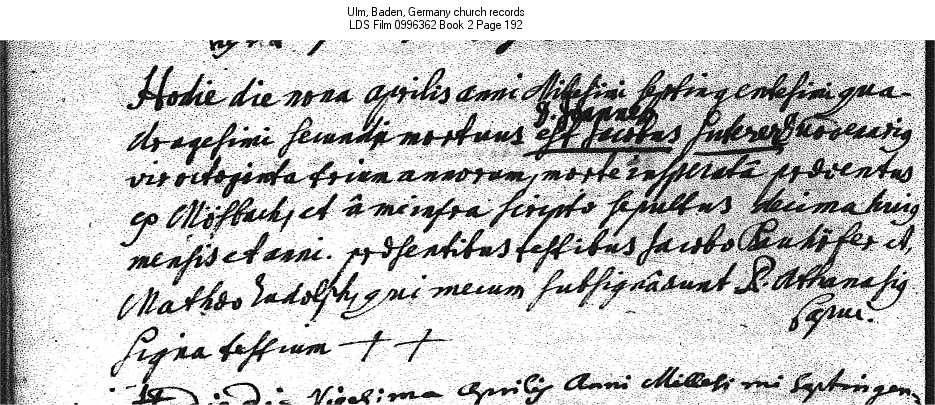Ulm, Baden, Germany church records LDS Film 0996362 Book 2 Page 192