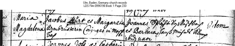 Ulm, Baden, Germany church records LDS Film 0996198 Book 1 Page 233
