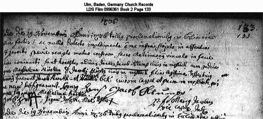 Ulm, Baden, Germany Church Records LDS Film 0996361 Book 2 Page 133