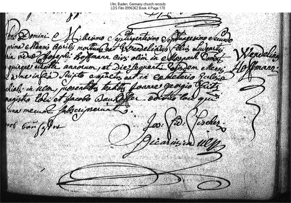 Ulm, Baden, Germany church records LDS Film 0996362 Book 4 Page 170