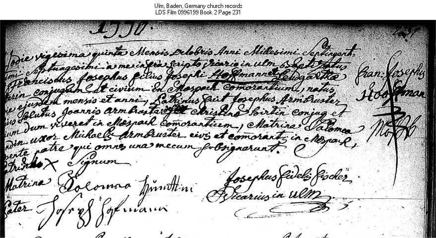 Ulm, Baden, Germany church records LDS Film 0996199 Book 2 Page 231