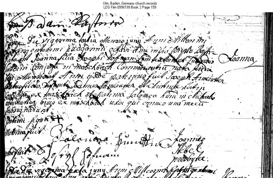 Ulm, Baden, Germany church records LDS Film 0996199 Book 2 Page 159