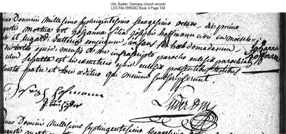 Ulm, Baden, Germany church records LDS Film 0996362 Book 4 Page 104