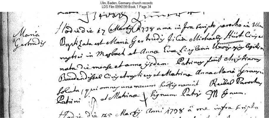 Ulm, Baden, Germany church records LDS Film 0996199 Book 1 Page 34