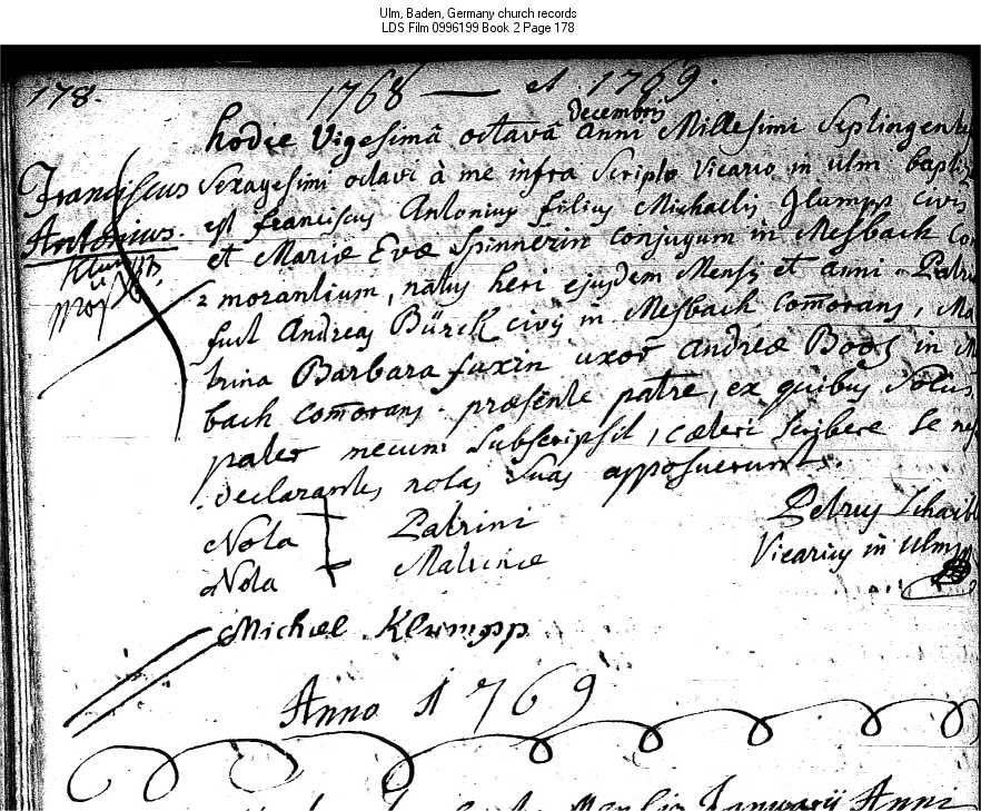 Ulm, Baden, Germany church records LDS Film 0996199 Book 2 Page 178