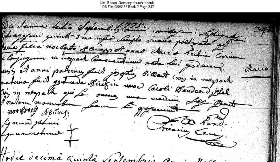 Ulm, Baden, Germany church records LDS Film 0996199 Book 2 Page 342
