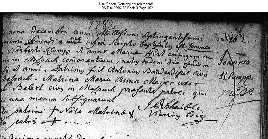 Ulm, Baden, Germany church records LDS Film 0996199 Book 3 Page 162