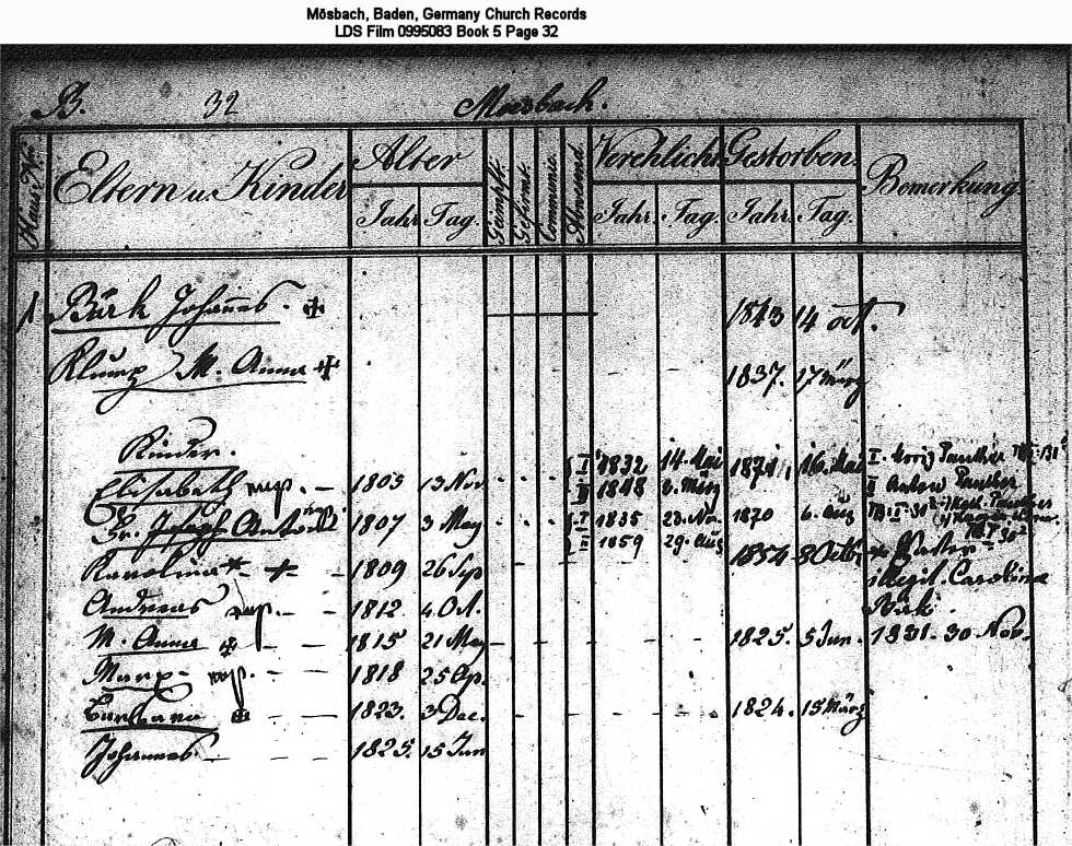 Mösbach, Baden, Germany Church Records LDS Film 0995083 Book 5 Page 32