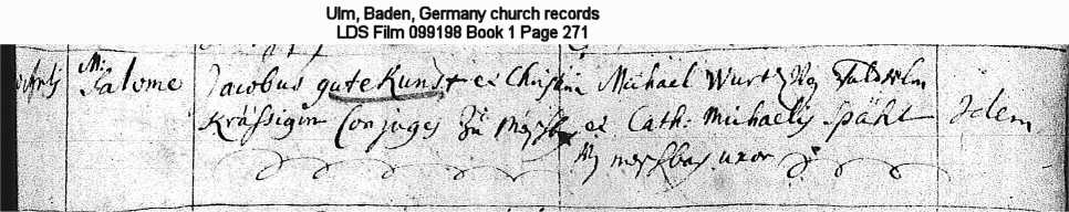 | Birth Record Ulm, Baden, Germany church records LDS Film 099198 Book 1 Page 271 |