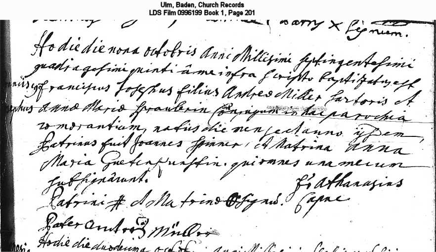 Ulm, Baden, Church Records LDS Film 0996199 Book 1, Page 201