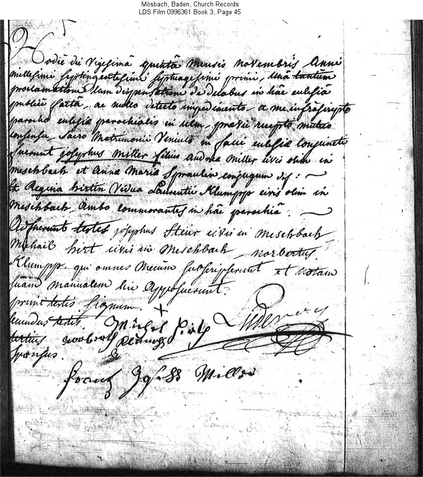 Ulm, Baden, Germany church records LDS Film 099361 Book 3 Page 45
