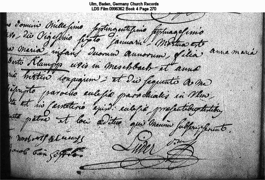 Ulm, Baden, Germany Church Records LDS Film 0996362 Book 4 Page 270