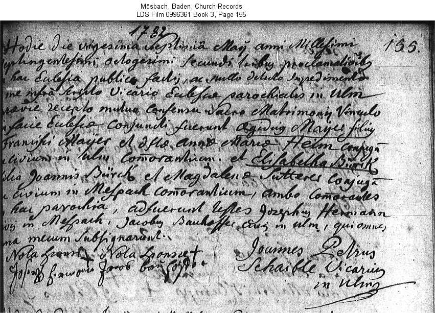 Mösbach, Baden, Church Records LDS Film 0996361 Book 3, Page 155