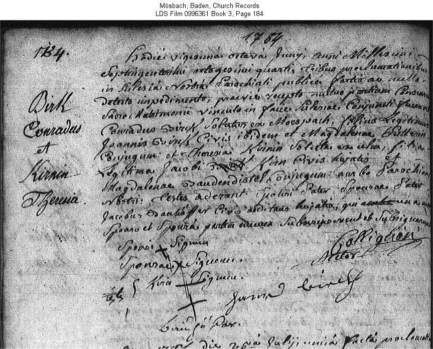 Mösbach, Baden, Church Records LDS Film 0996361 Book 3, Page 184
