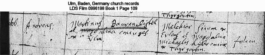 Ulm, Baden, Germany church records LDS Film 0996198 Book 1 Page 109