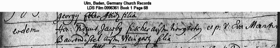 Ulm, Baden, Germany Church Records LDS Film 0996361 Book 1 Page 68