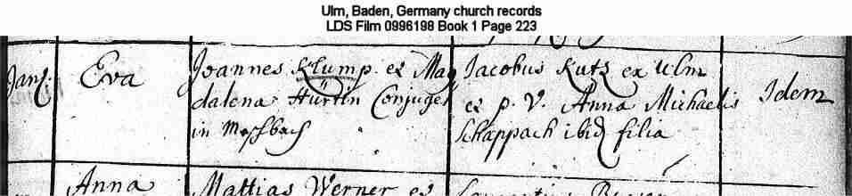 Ulm, Baden, Germany church records LDS Film 0996198 Book 1 Page 223