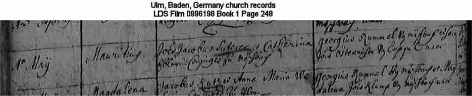 | Birth Record Ulm, Baden, Germany church records LDS Film 0996198 Book 1 Page 248 |