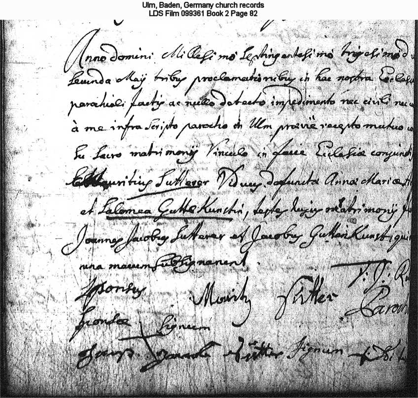 | Marriage Record Ulm, Baden, Germany church records LDS Film 099361 Book 2 Page 82 |