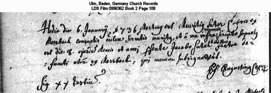 | Death Record Ulm, Baden, Germany Church Records LDS Film 0996362 Book 2 Page 108 |