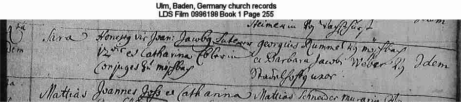 Ulm, Baden, Germany church records LDS Film 0996198 Book 1 Page 255