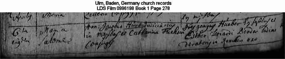 Ulm, Baden, Germany church records LDS Film 0996198 Book 1 Page 278