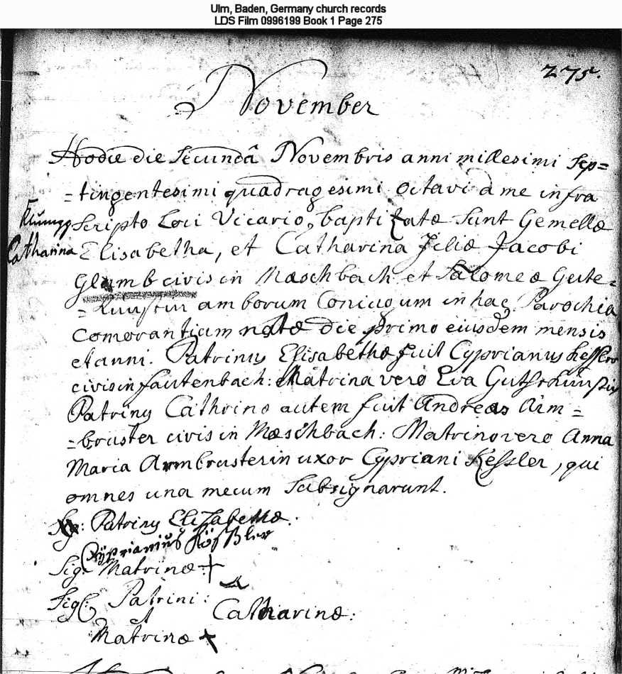 Ulm, Baden, Germany church records LDS Film 0996199 Book 1 Page 275 Twins