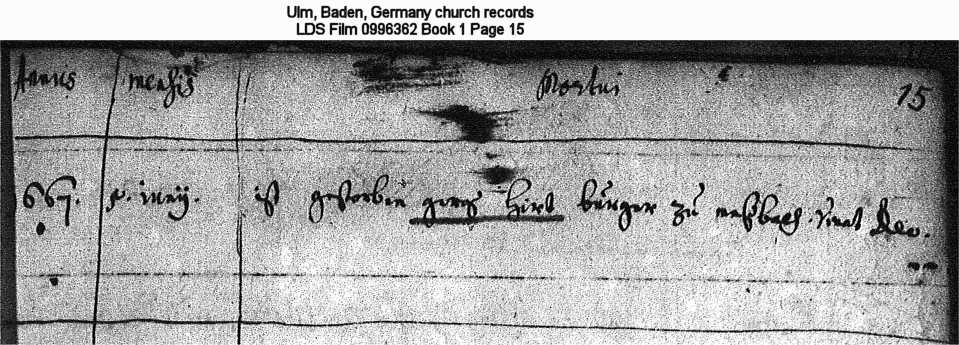 Ulm, Baden, Germany church records LDS Film 0996362 Book 1 Page 15