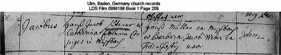 Ulm, Baden, Germany church records LDS Film 0996198 Book 1 Page 209