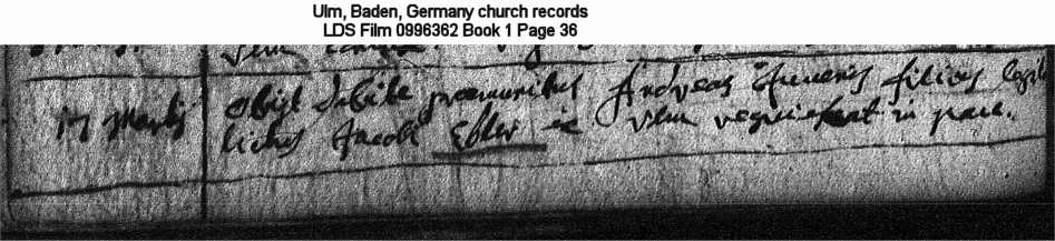 Ulm, Baden, Germany church records LDS Film 0996362 Book 1 Page 36