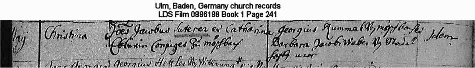 Ulm, Baden, Germany church records LDS Film 0996198 Book 1 Page 241