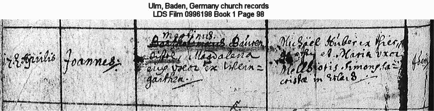 Ulm, Baden, Germany church records LDS Film 099198 Book 1 Page 98